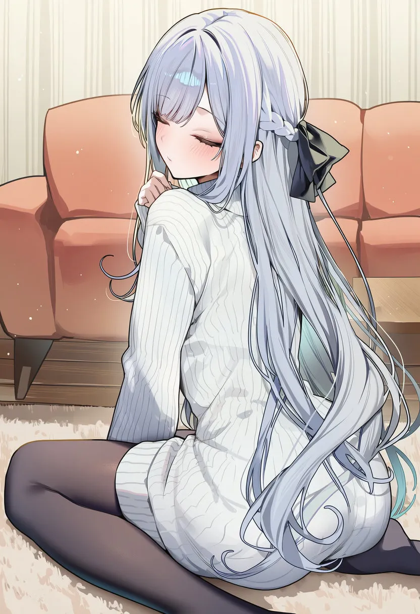 ※ 눈을 감고 있는 모습을 묘사하기 위해 유리아의 눈과 시선 태그 aqua eyes, looking at viewer 를 제거하고 closed eyes 태그를 추가한 뒤 진행했습니다. ※