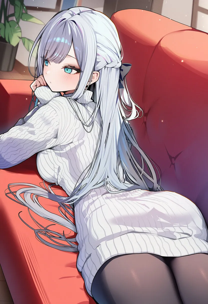 상반신과 관련된 태그를 제거하면 NAI가 더 잘 알아듣습니다. 유리아의 얼굴, 헤어스타일, 목 부분을 강조하는 의상 터틀넥과 시선 태그를 제거했습니다.