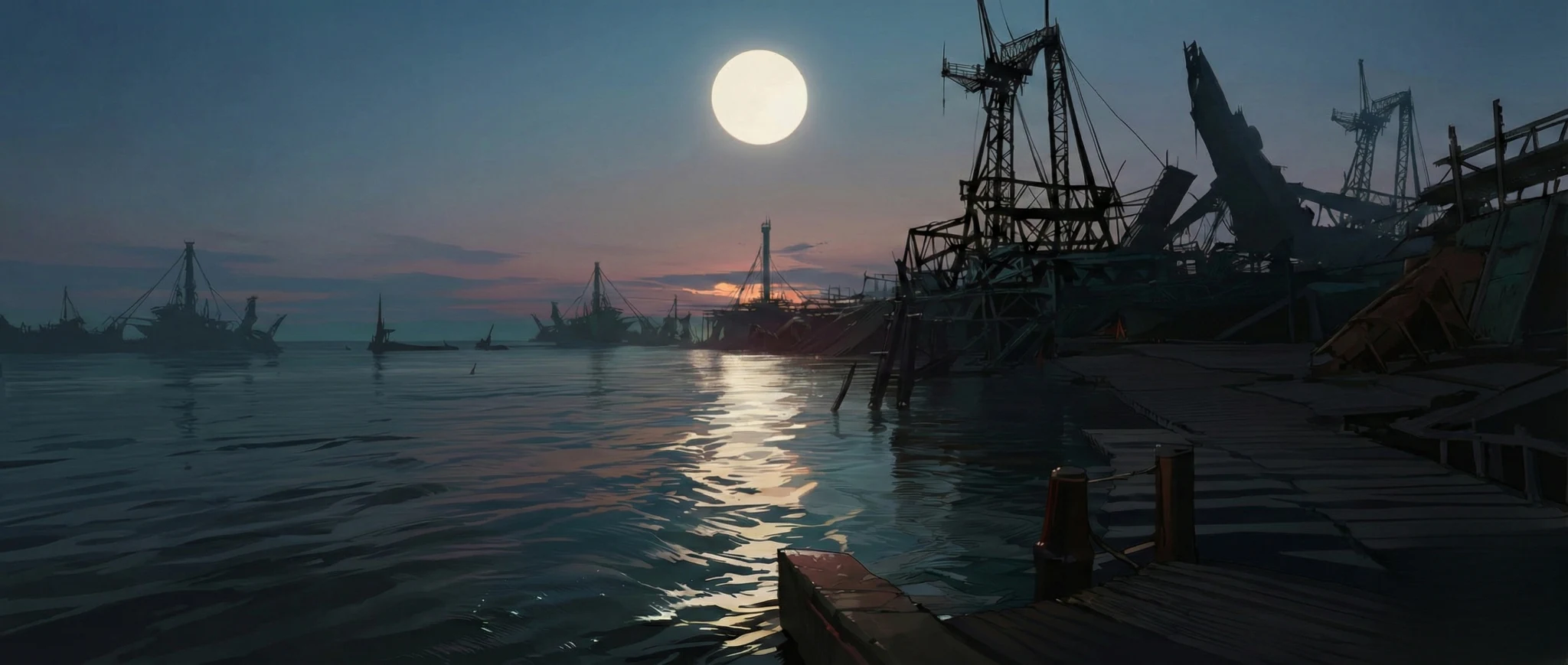 모험가가 부두에 발을 내딛자마자 느껴지는 것은 불길한 고요였다. 가스등은 깨진 채 방치되어 있었고, 바닥에는 주인을 잃은 짐 가방들이 쏟아져 나와 있었다. 그때, 부두 저편의 짙은 안개 속에서 기이한 소리가 들려왔다.