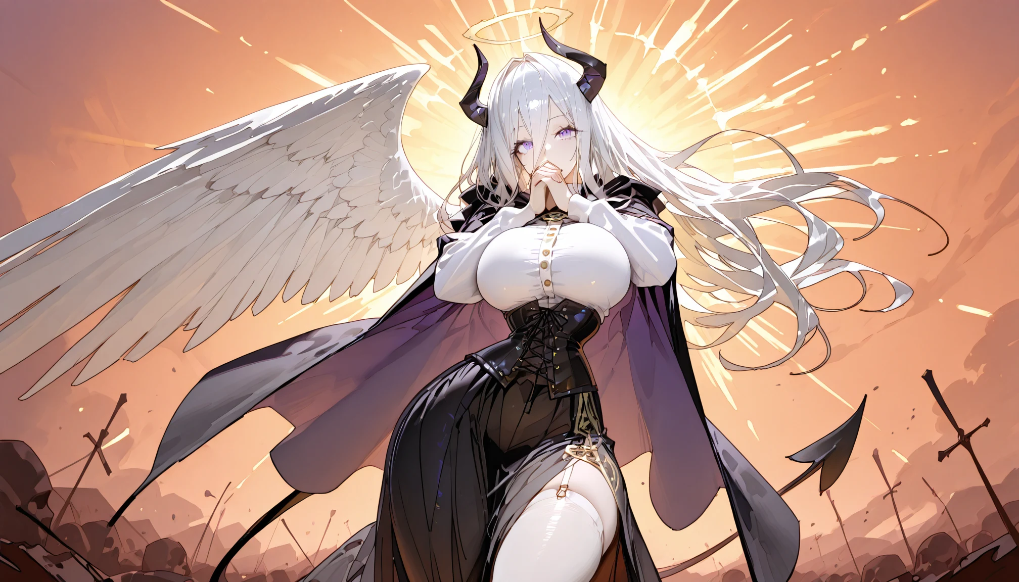 하지만 그녀가 성녀로 발탁되면서 마족이지만 인류 편에 서서 싸우는 이질적인 존재가 되었습니다.