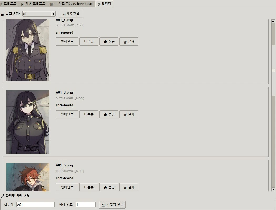 • 미분류 / 성공 / 실패: 필터보기에서 이것들만 볼수있게 한거. 괜찮은건 성공작에 이상한건 실패로